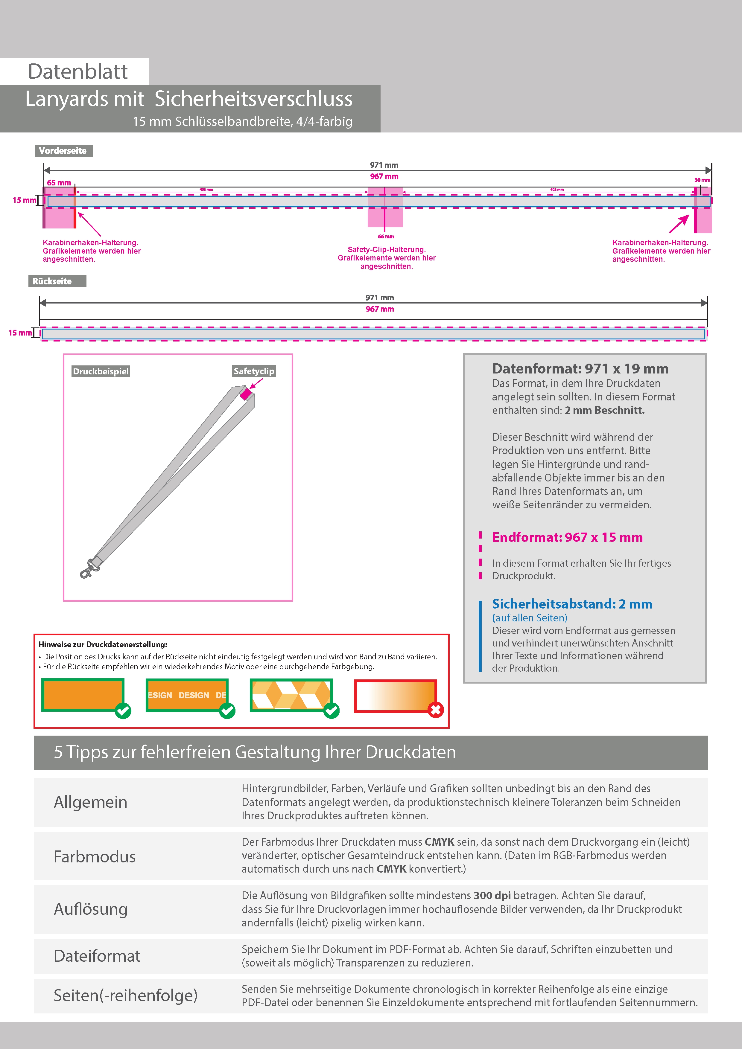 Lanyards mit Sicherheitsverschluss, 15 mm Schlüsselbandbreite, 4/4-farbig beidseitig bedruckt