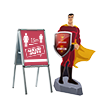 Lassen Sie Platten wie beispielsweise unsere Acrylglasplatten mit Ihrem Firmenlogo bedrucken und setzen Sie sie als Barriere auf dem Verkaufstresen Ihres Lebensmittelgeschäfts ein. Fußbodenaufkleber sind eine tolle Möglichkeit, um die Kunden im Geschäft vor allem im Kassenbereich daran zu erinnern, ausreichend Abstand zu halten. Poster, Aufsteller, Aufkleber und Co bieten Ihnen die Möglichkeit, Ihre Kundschaft darauf hinzuweisen, nur handelsübliche Mengen einzukaufen, und sie zudem an vorherrschende Hygienemaßnahmen zu erinnern. Ferner finden Sie bei uns Kundenstopper und Beachflags, die Sie vor Ihrem Geschäft aufstellen können, um dort darüber Passanten zu informieren, dass Sie geöffnet haben.