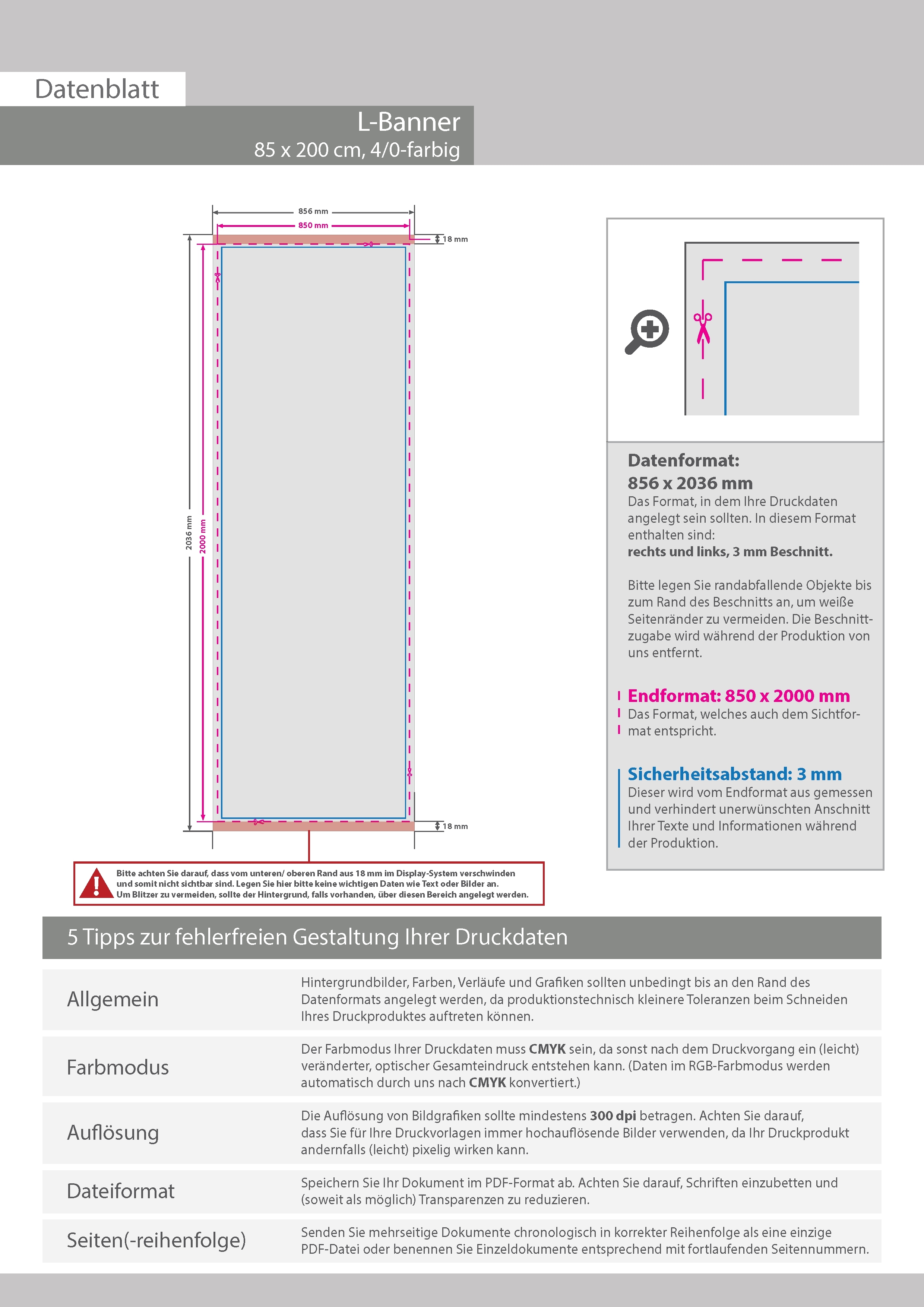 L-Banner 85 cm x 200 cm inkl. Gestell, Druck und Versand