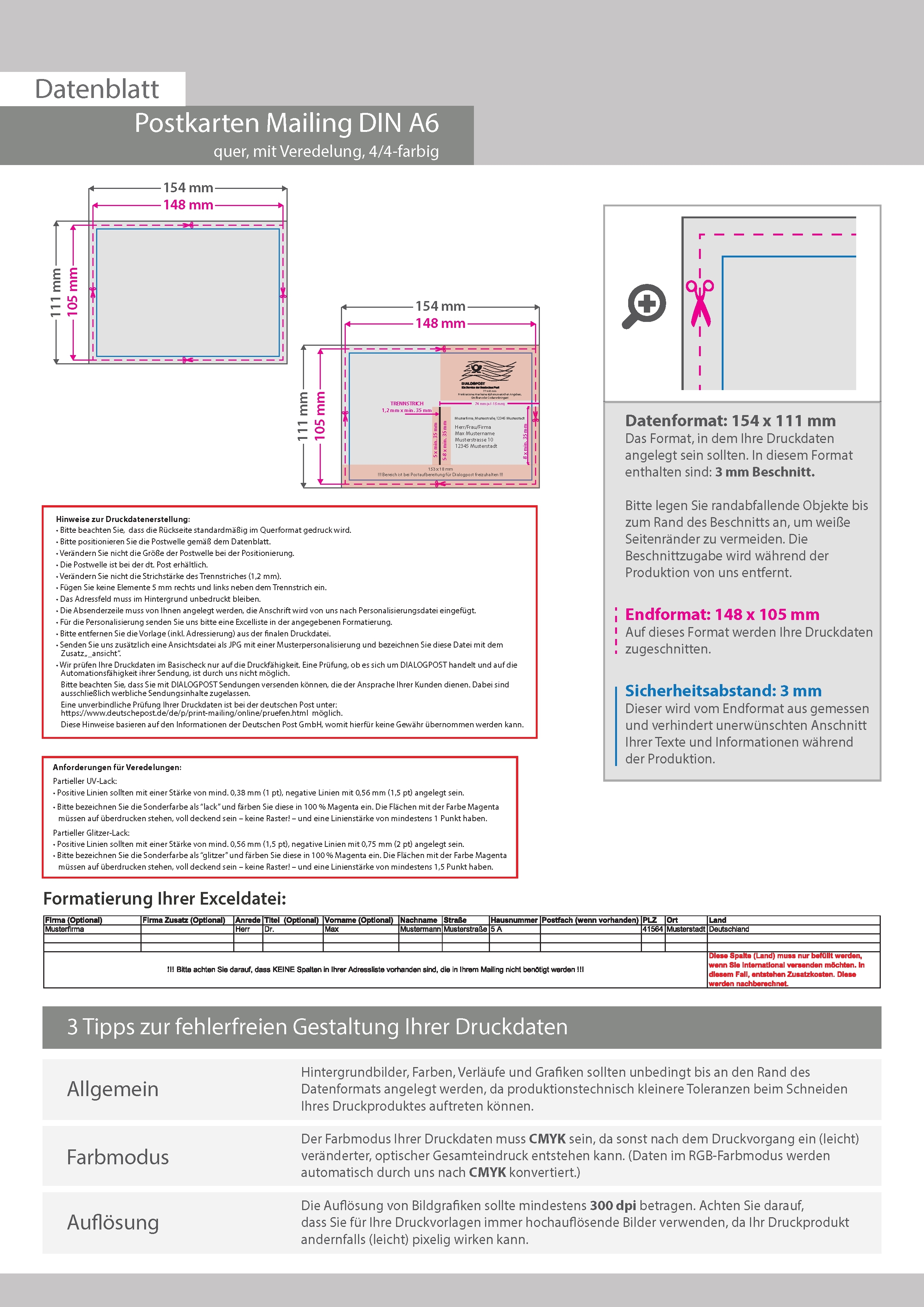 Postkarten-Mailing DIN A6 Quer (14,8 cm x 10,5 cm) mit Mattfolie kaschiert