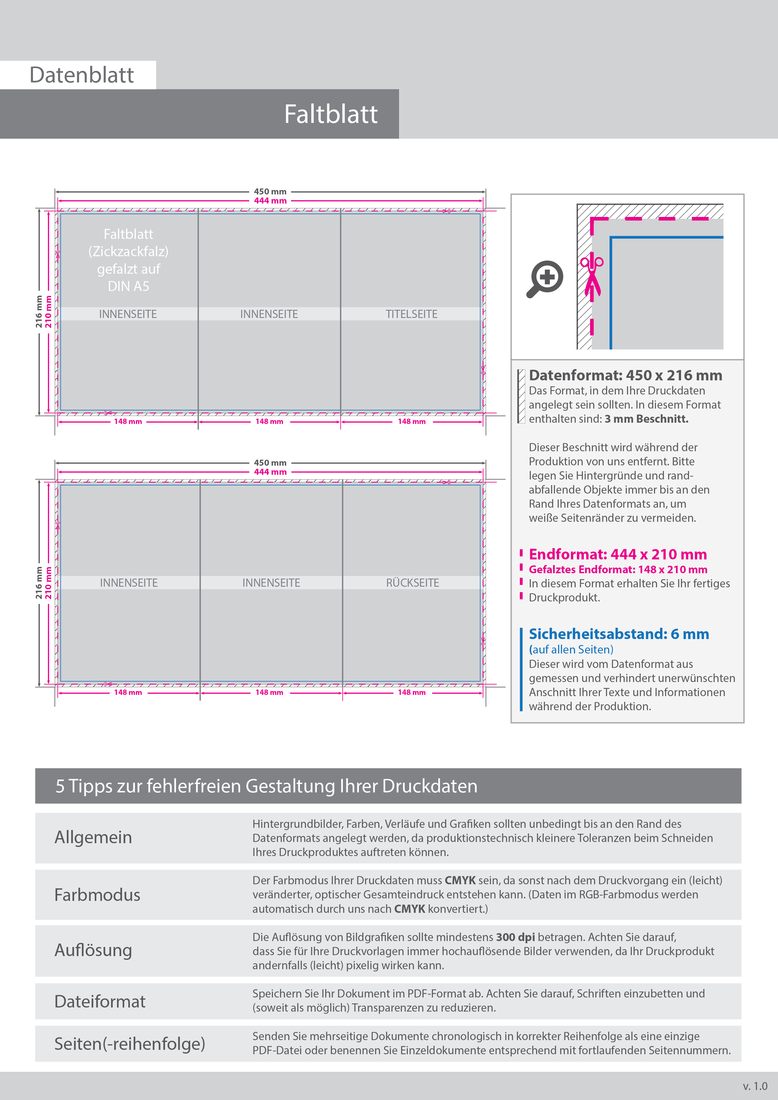 Faltblatt, gefalzt auf DIN A5, 6-seiter (Zickzackfalz)